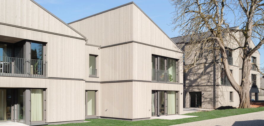 "Einen Zeitvorteil brachte die Beplankung der Innenwände mit Hartgips- und Gipskartonplatten bereits im Werk des KLH-/CLT-Lieferanten, der ABA Holz van Kempen GmbH."
