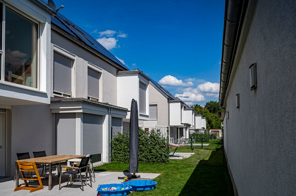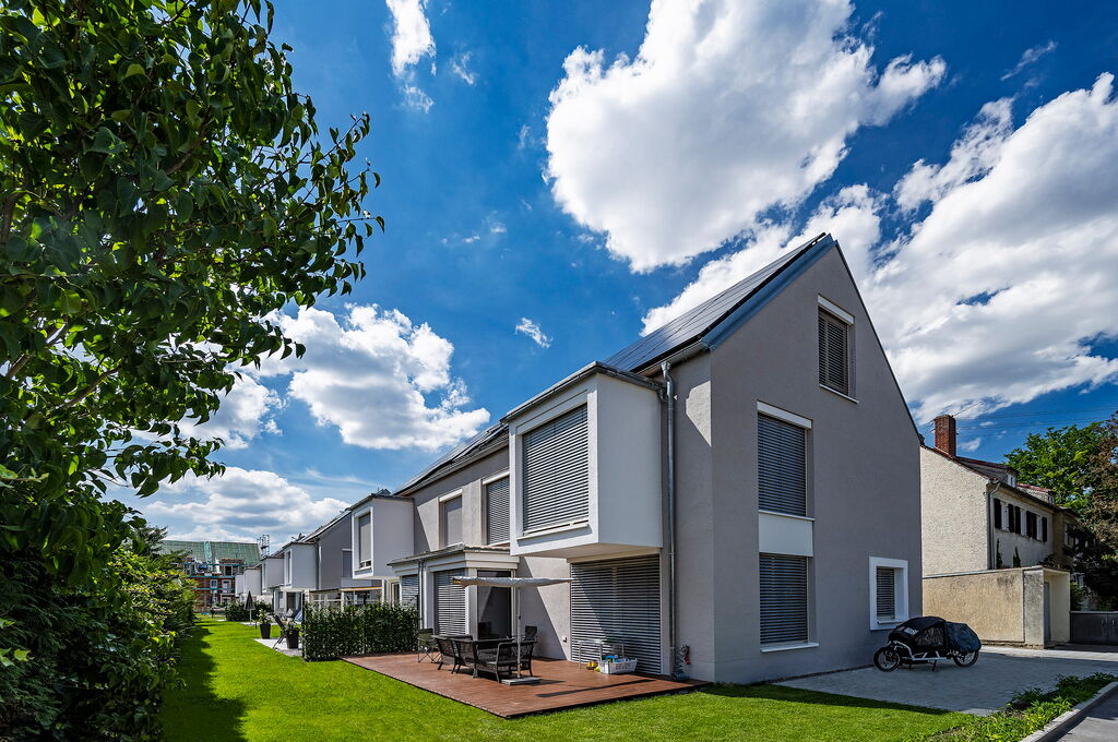 Die Häuser erfüllen den Standard Effizienzhaus 40 Plus mit Photovoltaikanlage, Wärmepumpe und Batteriespeicher – abhängig vom Nutzerverhalten ist ein Autarkiegrad von bis zu 57 % möglich. Eine Fußbodenheizung mit Kühlfunktion garantiert ganzjährig hohen Wohnkomfort. Die Häuser bieten Erdgeschoss, Obergeschoss und Dachgeschoss sowie einen vollwertigen Keller – viel Raum für modernes Wohnen. Das Erdgeschoss ist als offener, großzügiger Wohnbereich gestaltet und bietet direkten Zugang zum eigenen Garten. Im Obergeschoss befinden sich Schlafzimmer und weitere Wohnräume, während das Dachgeschoss als Studio mit separatem Bad ausgebaut ist. Zu jeder Einheit gehören zwei Stellplätze oder Carports.