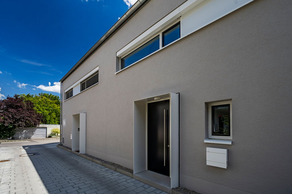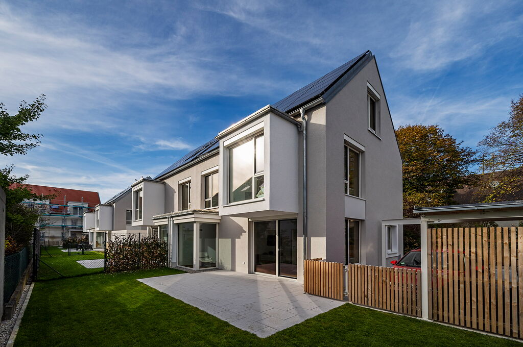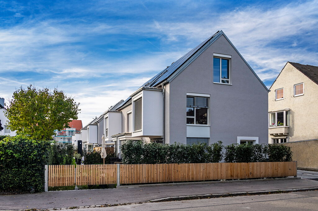 In Stadtbergen befinden sich am oberen Stadtweg sechs moderne Doppelhaushälften in massiver KLH-Massivholzbauweise – insgesamt über 1.000 m² Brettsperrholz für tragende und aussteifende Bauteile. Jede Wohneinheit hat eine Grundfläche von 9 x 8 m, erstreckt sich über vier Etagen und hat einen eigenen Garten. Die Häuser überzeugen durch nachhaltige Bauweise, hohen Wohnkomfort und energieeffiziente Technik.
