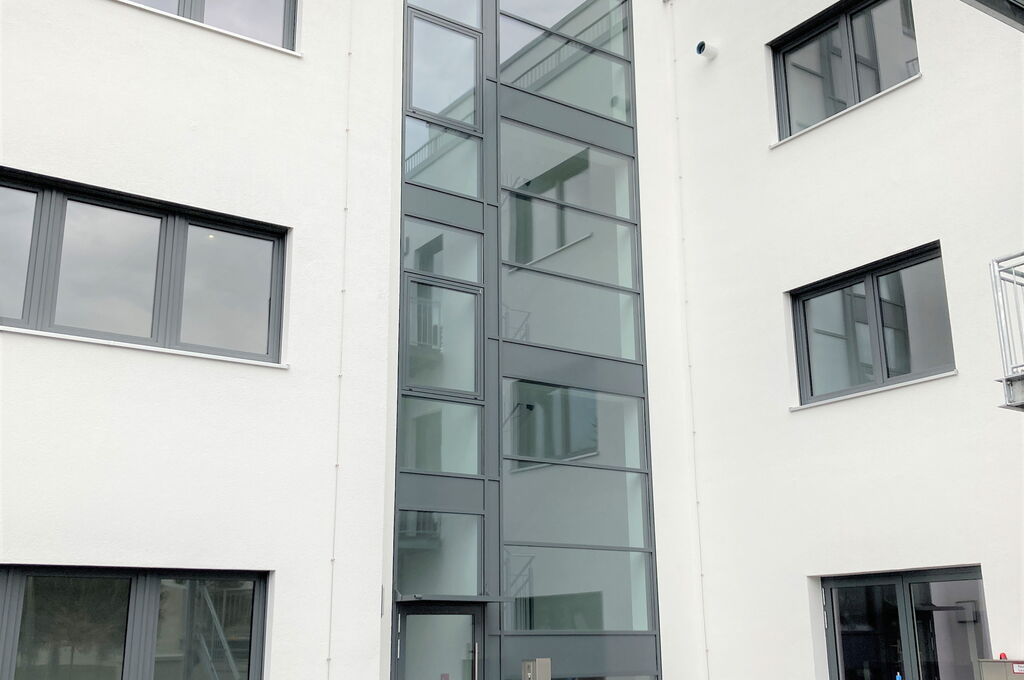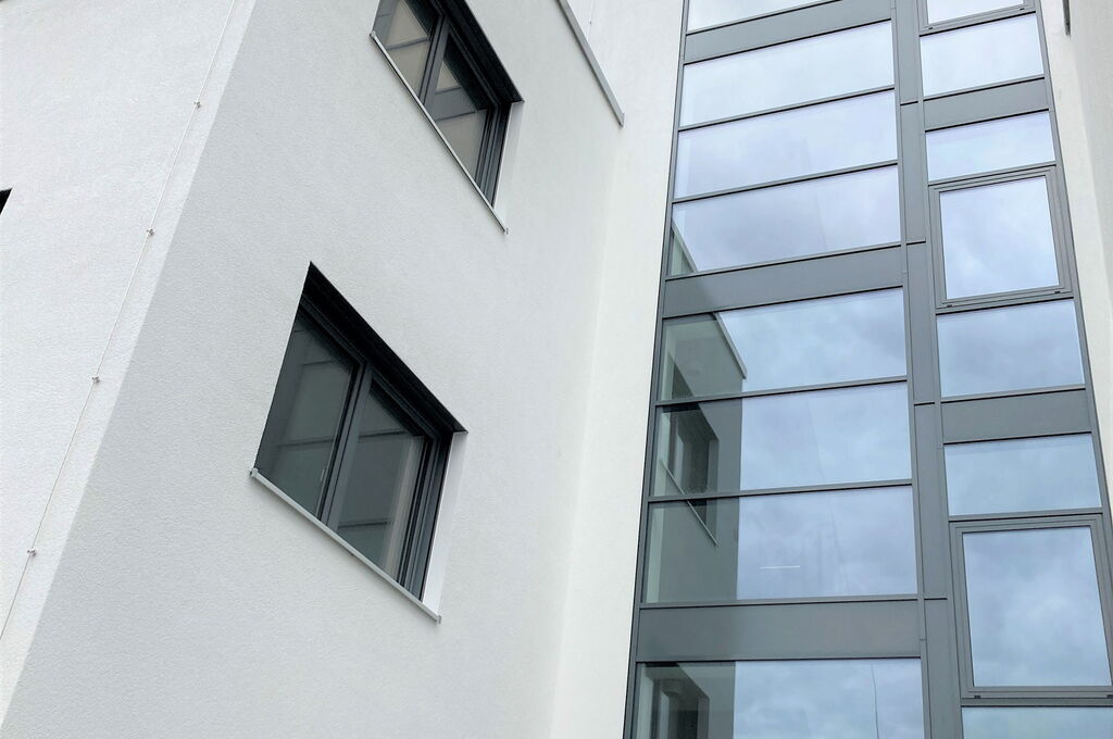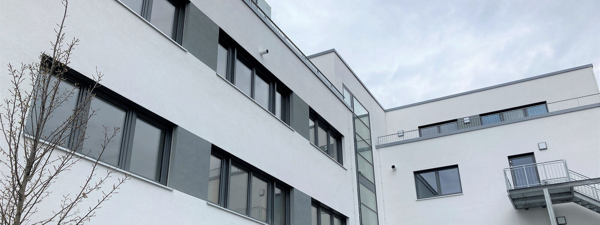 Wie mehrgeschossiger Holzbau in der Praxis umgesetzt werden kann, zeigt dieses Bürogebäude in Holz-Hybrid-Bauweise in Neusäß. Die Tiefgarage sowie die Treppenhäuser wurden in Massivbauweise errichtet. Die Außenwände sowie ein Teil der Innenwände sind Holzrahmen. Um eine langfristig flexible Raumgestaltung zu ermöglichen, ist ein Teil der Innenwände als Trockenbau realisiert. Für die Geschossdecken wurde Brettsperrholz verwendet, hierfür wurden über 5.000 m² KLH® - CLT Massivholzplatten verbaut.