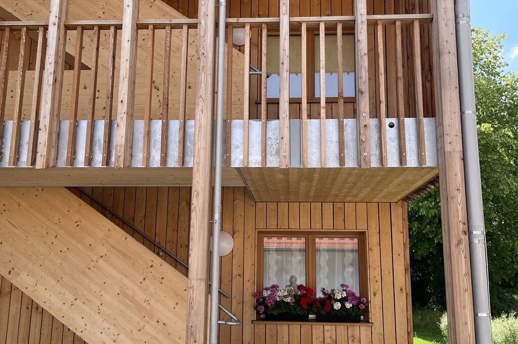 "Die Gemeinde Kranzberg definiert mit der Wohnanlage aus drei Baukörpern ihren südlichen Ortsrand neu. In dreigeschossigen Baukörpern wurden 21 Wohnungen im Rahmen des geförderten Wohnungsbaus realisiert, die durch ein Gemeinschaftshaus ergänzt werden. Die konsequente Umsetzung in Holzbauweise garantiert hohe Aufenthalts- und Wohnqualität. Bemerkenswert ist die effiziente Ausnutzung des Grundstücks und unaufgeregte Gestaltung der Baukörper. Die Wohnanlage mit drei Geschossen ist beispielhaft und kann als Modell für viele vergleichbare Projekte im ländlichen Raum dienen. Die großzügigen Balkon- und Erschließungszonen stellen Bezüge zwischen innen und außen entlang der durchgehenden Holzdeckenlagen her. Die Ausrichtung nach Südwesten mit großzügigen Verglasungen am Ortsrand Richtung Weiher garantiert helle und freundliche Wohnräume. Eine hofartige Anordnung der Baukörper lädt auch in den Freibereichen zum Verweilen und sich treffen ein. Die konsequente Entscheidung für den Baustoff Holz bringt Brandschutz und Nutzung in Einklang. Die verhältnismäßig dichte Anlage mit drei Geschossen ist beispielhaft und kann als Modell für vergleichbare Projekte im ländlichen Raum dienen."