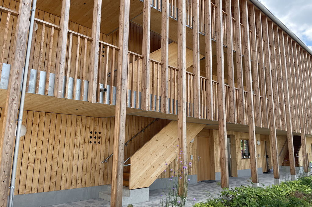 Der Holzbaupreis Bayern 2022 wurde an das Mehrgenerationenhaus Kranzberg verliehen. Das Bayerische Staatsministerium für Ernährung, Landwirtschaft und Forsten und proHolz Bayern wollen damit die gestalterische Vielfalt beim Bauen mit Holz zum Ausdruck bringen. Bei diesem Projekt sind 3400 m² Wände und Decken aus KLH® - CLT Massivholzplatten verbaut und wird von der Jury folgendermaßen beschrieben.