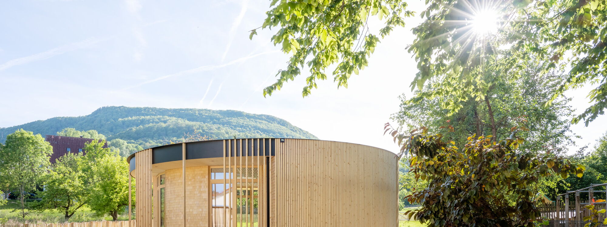 Auf der schwäbischen Alb ist in nur vier Monaten Bauzeit die Natur-KiTa Hepsisau entstanden. Es handelt sich um ein Einraumkonzept für eine Gruppe mit 20 Kindern zwischen 3 und 6 Jahren. Träger der Einrichtung, welche in Holzbauweise erstellt wurde, ist die Stadt Weilheim an der Teck. Aufgrund seiner runden Form erinnert die Natur-KiTa an ein Schneckenhaus. Der runde Gruppenraum wurde nicht mittig platziert, sodass die umlaufende Veranda unterschiedlich tief ist.