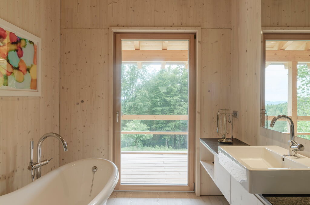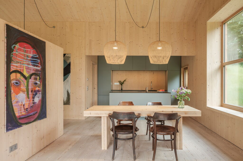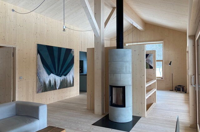 Das Besondere an diesem Einfamilienhaus ist, dass das gesamte Wohngeschoss in astreiner, sichtbarer KLH-Konstruktion erstellt wurde. In Summe wurden über 500 m² KLH® - CLT Massivholzplatten für Wände und Dach verbaut, die vollständig in Wohnsichtqualität ausgeführt wurden, diese Oberflächen schaffen eine angenehme Wohnatmosphäre sowie eine optische Raffinesse.
